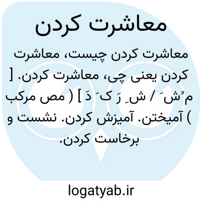 معاشرت کردن. [ م ُش َ / ش ِ رَ ک َ دَ ] ( مص مرکب ) آمیختن. آمیزش کردن. نشست و برخاست کردن. ( یادداشت به خط مرحوم دهخدا ).