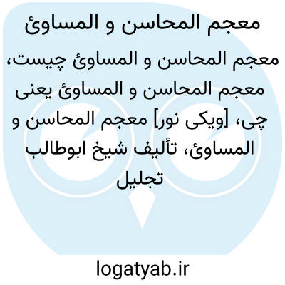 [ویکی نور] معجم المحاسن و المساوئ، تألیف شیخ ابوطالب تجلیل تبریزی، به زبان عربی و مشتمل بر ذکر خوبی ها و بدی ها از دیدگاه شریعت اسلام است. در حقیقت، کتاب، دایرةالمعارفی در موضوعات و عناوین اخلاقی می باشد.