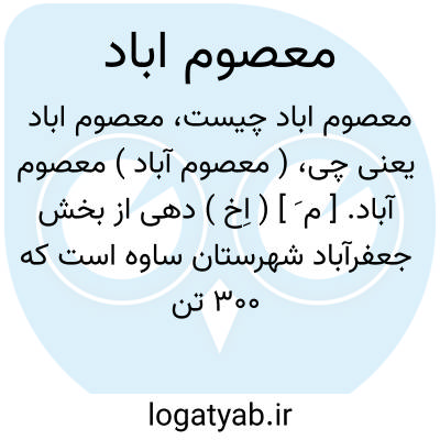 ( معصوم آباد ) معصوم آباد. [ م َ ] ( اِخ ) دهی از بخش جعفرآباد شهرستان ساوه است که 300 تن سکنه دارد. ( از فرهنگ جغرافیایی ایران ج 1 ).