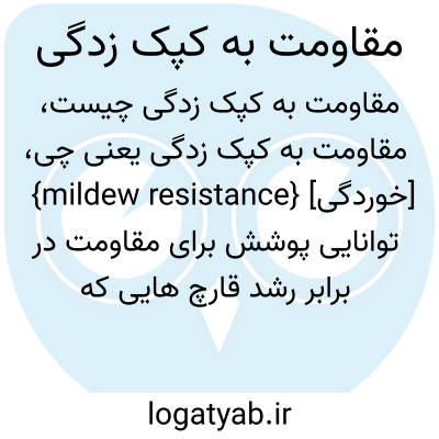 {mildew resistance} [خوردگی] توانایی پوشش برای مقاومت در برابر رشد قارچ هایی که می توانند موجب بی رنگی و درنهایت تجزیۀ پوشش شوند