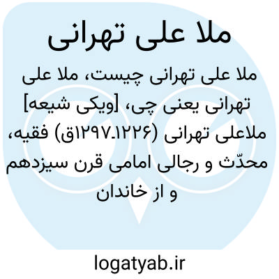 [ویکی شیعه] ملاعلی تهرانی (۱۲۲۶ـ۱۲۹۷ق) فقیه، محدّث و رجالی امامی قرن سیزدهم و از خاندان خلیلی است. او از محضر علمایی همچون صاحب فصول، کاشف الغطاء و صاحب جواهر بهره برد و در علوم دینی صاحب نظر شد. برخی وی را پس از وفات شیخ انصاری، اعلم می دانستند. ملا محمد باقر تستری و شیخ علی بن حسین خاقانی از جمله شاگردان او به شمار می روند.