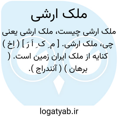 ملک ارشی. [ م ِ ک ِ اَ رَ ] ( اِخ ) کنایه از ملک ایران زمین است. ( برهان ) ( آنندراج ). ظاهراً اصح «ملک آرشی » است منسوب به آرش کمانگیر. ( حاشیه برهان چ معین ).