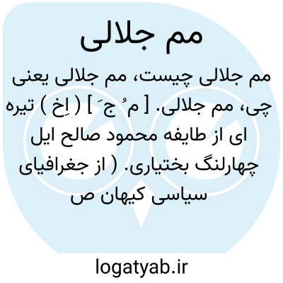 مم جلالی. [ م ُ ج َ ] ( اِخ ) تیره ای از طایفه محمود صالح ایل چهارلنگ بختیاری. ( از جغرافیای سیاسی کیهان ص 75 ).