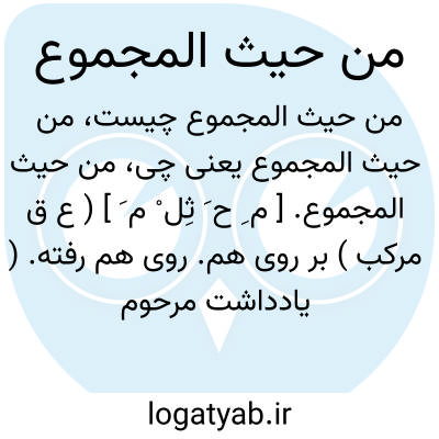 من حیث المجموع. [ م ِ ح َ ثِل ْ م َ ] ( ع ق مرکب ) بر روی هم. روی هم رفته. ( یادداشت مرحوم دهخدا ): من حیث المجموع باید این کار خوب تمام شود.