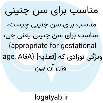 {appropriate for gestational age, AGA} [تغذیه] ویژگی نوزادی که وزن آن بین ده تا نود درصد وزن استاندارد سنش باشد