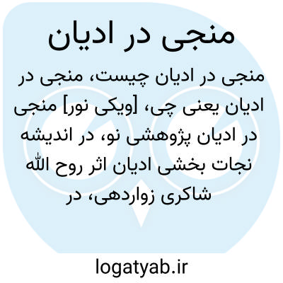 [ویکی نور] منجی در ادیان پژوهشی نو، در اندیشه نجات بخشی ادیان اثر روح الله شاکری زواردهی، در صدد است تا تلاش بشر برای ایجاد یک آینده امیدوارکننده توأم با سعادت و خوش بختی و انتظار یک موعود مصلح مشترک را به تصویر درآورد.