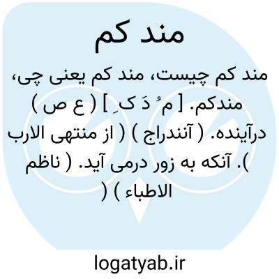 مندکم. [ م ُ دَ ک ِ ] ( ع ص ) درآینده. ( آنندراج ) ( از منتهی الارب ). آنکه به زور درمی آید. ( ناظم الاطباء ) ( از اقرب الموارد ). رجوع به اندکام شود.