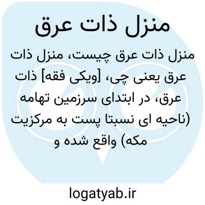 [ویکی فقه] ذات عرق، در ابتدای سرزمین تهامه (ناحیه ای نسبتا پست به مرکزیت مکه) واقع شده و مرز میان نجد (ناحیه ای کوهستانی) و تهامه است که حاجیان اهل عراق از آن می گذارند. ذات عرق یکی از منازلی است که کاروان امام حسین (علیه السلام) در آنجا توقف کرد.