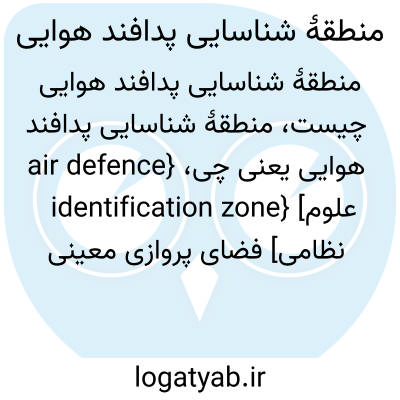 {air defence identification zone} [علوم نظامی] فضای پروازی معینی که در آن هرگونه پروازی باید شناسایی و مکان نمایی و واپایی شود اختـ. مَنشاپ هوایی ADIZ