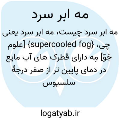 فرهنگستان زبان و ادب {supercooled fog} [علوم جَوّ] مِه دارای قطرک های آب مایع در دمای پایین تر از صفر درجۀ سلسیوس