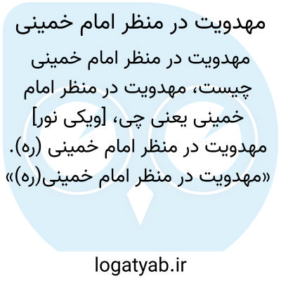 [ویکی نور] مهدویت در منظر امام خمینی (ره). «مهدویت در منظر امام خمینی(ره)» اثر ابوالفضل هدایتی، گردآوری و تحلیل گزیده هایی از سخنرانی ها، آراء و نوشته های امام خمینی(ره) درباره مهدویت و اهمیت انتظار و ظهور حضرت مهدی(عج) است که درسال 1387ش به زبان فارسی نوشته شده است.