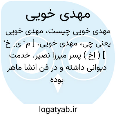 مهدی خویی. [ م َ ی ِ خ ُ ] ( اِخ ) پسر میرزا نصیر. خدمت دیوانی داشته و در فن انشا ماهر بوده و شعر می سروده است و در اواخر عمر سلوک عرفانی داشته و منزوی بوده و در حدود 1268 هَ. ق. زنده بوده است. از اوست: