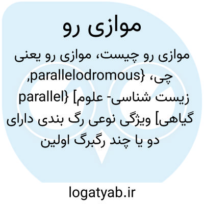 {parallelodromous, parallel} [زیست شناسی- علوم گیاهی] ویژگی نوعی رگ بندی دارای دو یا چند رگبرگ اولین یا دومین موازی که در رأس به هم می رسند