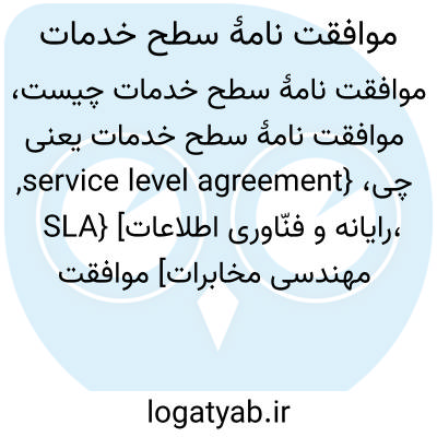 {service level agreement, SLA} [رایانه و فنّاوری اطلاعات، مهندسی مخابرات] موافقت نامه ای بین بهره بردار و گیرندۀ خدمات که در آن چگونگی ارائۀ خدمات و همچنین جریمه های مربوط به قطع شدن خدمات مشخص می شود
