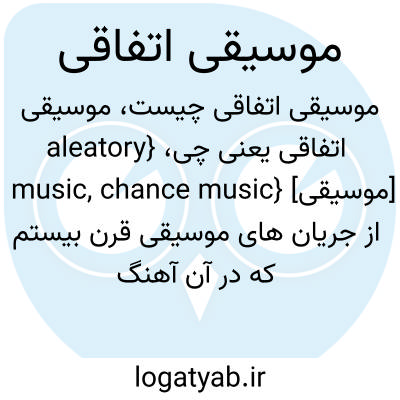 {aleatory music, chance music} [موسیقی] از جریان های موسیقی قرن بیستم که در آن آهنگ ساز آگاهانه از عامل اتفاق یا عدم قطعیت در فرایند ساخت یا اجرا استفاده می کند