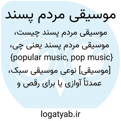 {popular music, pop music} [موسیقی] نوعی موسیقی سبک، عمدتاً آوازی یا برای رقص و نمایش های موسیقایی که با اتکا به اقتصاد بازار و ذوق عامه در اروپای اواخر قرن هیجدهم به وجود آمد و از قرن بیستم به طور وسیعی مورد استفادۀ رسانه های گروهی قرار گرفت