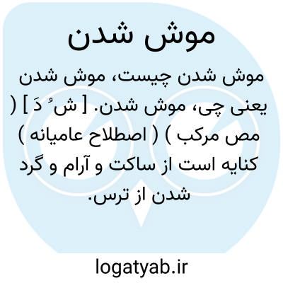 موش شدن. [ ش ُ دَ ] ( مص مرکب ) ( اصطلاح عامیانه ) کنایه است از ساکت و آرام و گرد شدن از ترس. ( یادداشت مؤلف ).