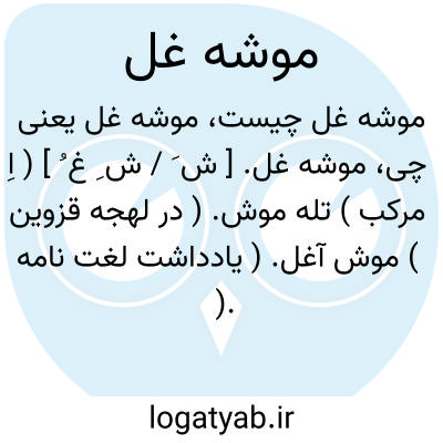 موشه غل. [ ش َ / ش ِ غ ُ ] ( اِ مرکب ) تله موش. ( در لهجه قزوین ) موش آغل. ( یادداشت لغت نامه ).