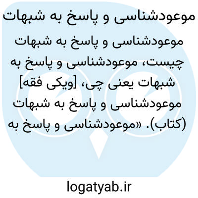 [ویکی نور] موعودشناسی و پاسخ به شبهات اثر علی اصغر رضوانی، با موضوع پاسخ به شبهات مسأله مهدویت است که به زبان فارسی و در سال 1388ش نوشته شده است.