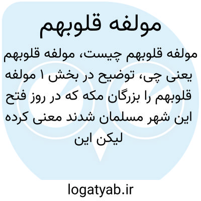 توضیح در بخش ۱ مولفه قلوبهم را بزرگان مکه که در روز فتح این شهر مسلمان شدند معنی کرده لیکن این تعریف دقیق نیست. چه آن دسته از جنگ حنین که رسول ( ص ) از غنیمت های جنگی بخشی به آنان داد این لقب یافتند.