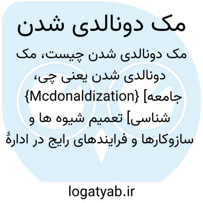 {Mcdonaldization} [جامعه شناسی] تعمیم شیوه ها و سازوکارها و فرایندهای رایج در ادارۀ غذاخوری های فوری مک دونالد به کل جامعۀ امریکا و دیگر جوامع جهانی
