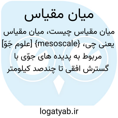 {mesoscale} [علوم جَوّ] مربوط به پدیده های جوّی با گسترش افقی تا چندصد کیلومتر