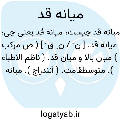 میانه قد. [ ن َ / ن ِ ق َ ] ( ص مرکب ) میان بالا و میان قد. ( ناظم الاطباء ). متوسطقامت. ( آنندراج ). میانه قامت. میانه بالا. معتدل القامه. ( یادداشت مؤلف ). صعت. ( منتهی الارب ): ترکة؛ زن میانه قد. ( منتهی الارب ).