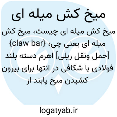 {claw bar} [حمل ونقل ریلی] اهرم دسته بلند فولادی با شکافی در انتها برای بیرون کشیدن میخ پابند از ریل بند
