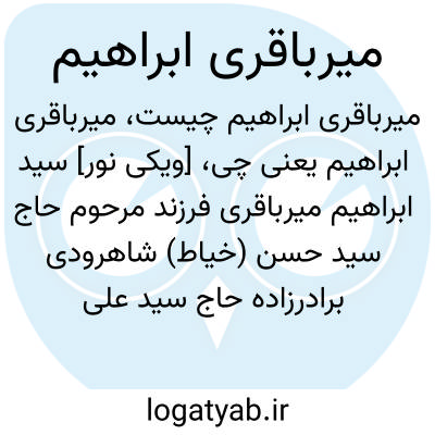 [ویکی نور] سید ابراهیم میرباقری فرزند مرحوم حاج سید حسن (خیاط) شاهرودی برادرزاده حاج سید علی میرباقری، واعظ معروف تهران، از فضلاء، نویسندگان، خطباء و اساتید معاصر دانشگاه است.