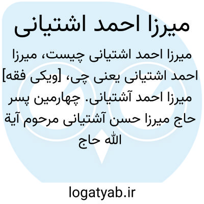 [ویکی شیعه] میرزا احمد آشتیانی. میرزا احمد آشْتیانی(۱۳۰۰-۱۳۹۵ق)، فقیه و فیلسوف شیعه، فرزند کوچک میرزا محمد حسن آشتیانی است. وی از مراجعی همچون میرزا حسین نائینی، شیخ عبدالکریم حائری، آقا ضیاء عراقی، سید ابوالحسن اصفهانی و آقا حسین بروجردی اجازه اجتهاد داشت. او مدرس علوم معقول و منقول بود و از جمله آثار ایشان می توان رساله قول ثابت، مقالات احمدیه و نامه رهبران را نام برد. وی از سال ۱۳۴۰ تا هنگام وفات در تهران به تدریس و ارشاد مردم اشتغال داشت.