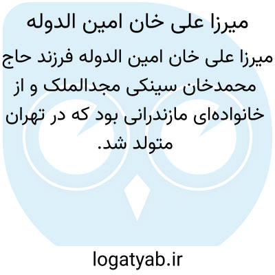 [ویکی فقه] "میرزا علی خان" که دارای القابی از قبیل «منشی حضور، امین الملک و امین الدوله» بود، پسر "حاج محمدخان سینکی مجدالملک" (صاحب رساله مجدیه) می باشد. اجداد امین الدوله اصالتاً مازندرانی بوده ولی چون در «سینک» از قرای «لواسان» دارای ملک و املاک بودند از این رو به سینکی معروف بودند.