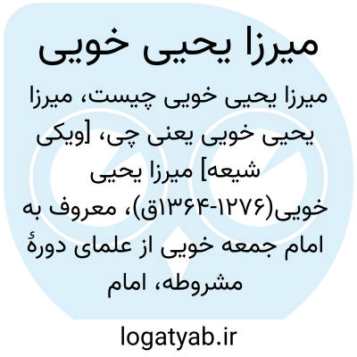 [ویکی شیعه] میرزا یحیی خویی(۱۲۷۶-۱۳۶۴ق)، معروف به امام جمعه خویی از علمای دورۀ مشروطه، امام جمعه خوی، از علمای قانون طراز اول، نمایندۀ مجلس شورای ملی و پس از آن مجتهد تهران بود.