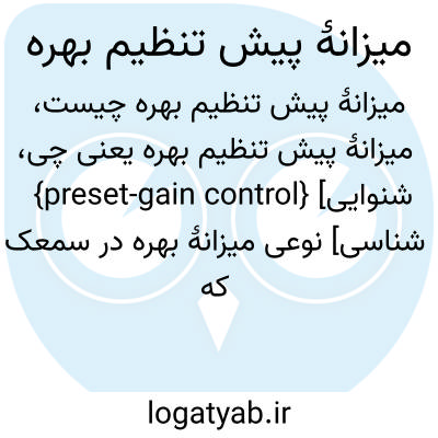 {preset-gain control} [شنوایی شناسی] نوعی میزانۀ بهره در سمعک که کاربر به آن دسترسی ندارد و شنوایی شناس آن را تنظیم می کند