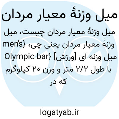 {men's Olympic bar} [ورزش] میل وزنه ای با طول 2/2 متر و وزن 20 کیلوگرم که در مسابقات وزنه برداری مردان از آن استفاده می شود