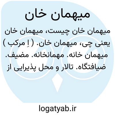 میهمان خان. ( اِ مرکب ) میهمان خانه. مهمانخانه. مضیف. ضیافتگاه. تالار و محل پذیرایی از مهمان: