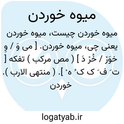 میوه خوردن. [ می وَ / وِ خوَرْ / خُرْ دَ ] ( مص مرکب ) تفکه [ ت َ ف َ ک ک ُ ه ْ ]. ( منتهی الارب ). خوردن میوه. از ثمر درختی خوردن: