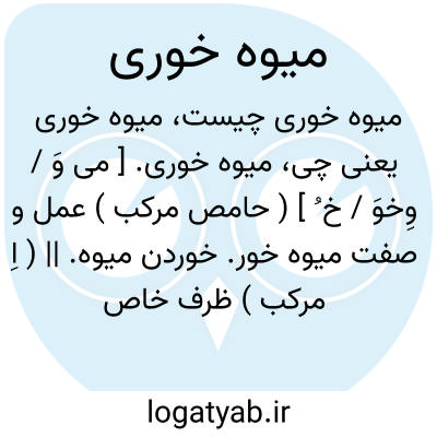 میوه خوری. [ می وَ / وِخوَ / خ ُ ] ( حامص مرکب ) عمل و صفت میوه خور. خوردن میوه. || ( اِ مرکب ) ظرف خاص برای نهادن میوه در خوان. ظرف برای نهادن میوه. ( یادداشت مؤلف ).