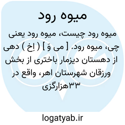 میوه رود. [ می وَ ] ( اِخ ) دهی از دهستان دیزمار باختری از بخش ورزقان شهرستان اهر، واقع در 33هزارگزی باختری ورزقان با 215 تن سکنه. آب آن از رودخانه و راه آن مالرو است. ( از فرهنگ جغرافیائی ایران ج 4 ).