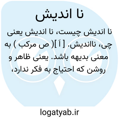 نااندیش. [ اَ ]( ص مرکب ) به معنی بدیهه باشد. یعنی ظاهر و روشن که احتیاج به فکر ندارد، چنانکه گویند روز روشن است و شب تاریک. ( برهان قاطع ) ( انجمن آرای ناصری ). هر چیز آشکار و روشن و بدیهی که محتاج به فکر و اندیشه نباشد و تأمل لازم نداشته باشد و بلاتأمل. ( ناظم الاطباء ). و رجوع به آنندراج شود.