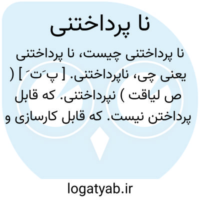 ناپرداختنی. [ پ َت َ ] ( ص لیاقت ) نپرداختنی. که قابل پرداختن نیست. که قابل کارسازی و تأدیه نیست. که ادا کردنی نیست.