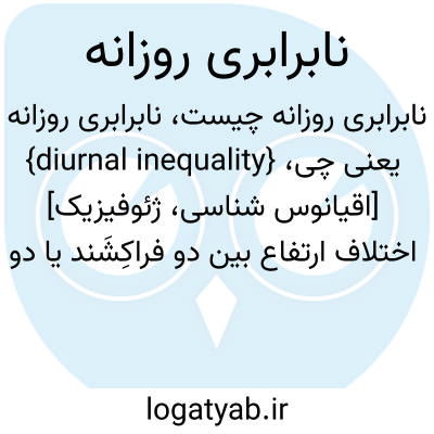 {diurnal inequality} [اقیانوس شناسی، ژئوفیزیک] اختلاف ارتفاع بین دو فراکِشَند یا دو فروکِشَند پیاپی در یک روز کِشَندی