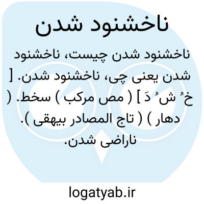 ناخشنود شدن. [ خ ُ ش ُ دَ ] ( مص مرکب ) سخط. ( دهار ) ( تاج المصادر بیهقی ). ناراضی شدن. خشمگین شدن.