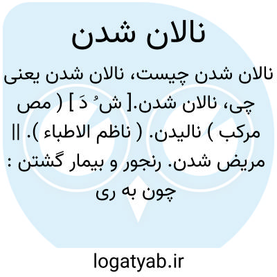 ( مصدر ) ۱ - بناله در آمدن: من بهر جمعیتی نالان شدم جفت بدحالان و خوشحالان شدم. ( مثنوی.نیک.۲ ) ۳:۱ - مریض شدن رنجورگشتن:[ چون ازبقلان ( بغلان ) بنده برفت سوی بلخ نالان شدو مدتی ببلخ بماند ][ دهم ماه محرم خواجه احمدحسن نالان شدنالانی سخت قوی.]