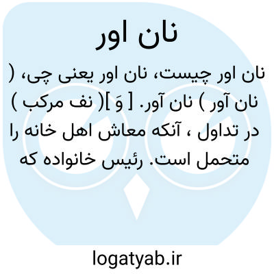 ( نان آور ) نان آور. [ وَ ]( نف مرکب ) در تداول، آنکه معاش اهل خانه را متحمل است. رئیس خانواده که معاش اعضای آن بعهده اوست. پدرخانواده. شوهر. رئیس خاندان. متکفل معاش اهل بیت.