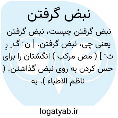 نبض گرفتن. [ ن َ گ ِ رِ ت َ ] ( مص مرکب ) انگشتان را برای حس کردن به روی نبض گذاشتن. ( ناظم الاطباء ). به جهت تشخیص تب، شماره حرکت نبض را در هر دقیقه معلوم کردن: