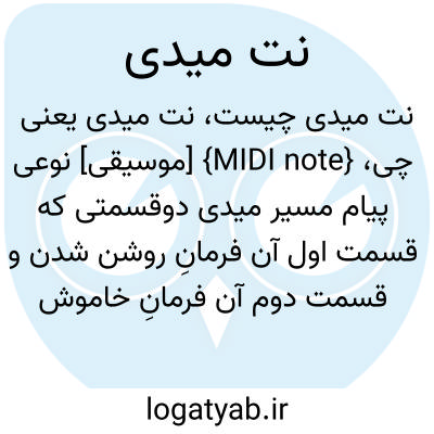 {MIDI note} [موسیقی] نوعی پیام مسیر میدی دوقسمتی که قسمت اول آن فرمانِ روشن شدن و قسمت دوم آن فرمانِ خاموش شدن است