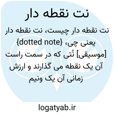{dotted note} [موسیقی] نُتی که در سمت راست آن یک نقطه می گذارند و ارزش زمانی آن یک ونیم برابر حالت بدون نقطۀ آن است
