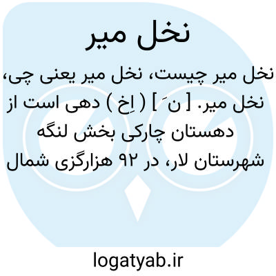 نخل میر. [ ن َ ] ( اِخ ) دهی است از دهستان چارکی بخش لنگه شهرستان لار، در 92 هزارگزی شمال غربی لنگه در جلگه گرمسیری واقع است و 351 تن سکنه دارد. آبش از چاه و محصولش غلات و خرما و صیفی و شغل اهالی زراعت است. ( از فرهنگ جغرافیائی ایران ج 7 ).