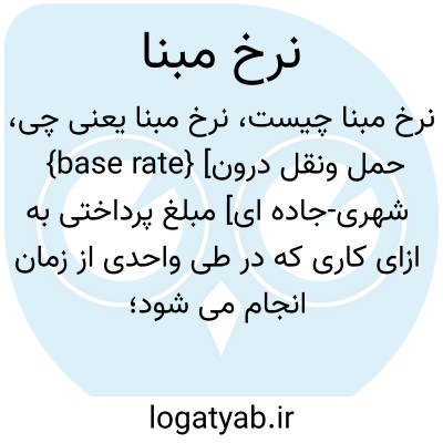 {base rate} [حمل ونقل درون شهری-جاده ای] مبلغ پرداختی به ازای کاری که در طی واحدی از زمان انجام می شود؛ این مبلغ شامل حقوق پایه و اضافه کار و پاداش نمی شود