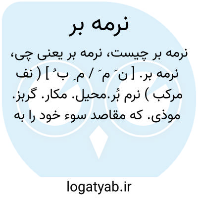 نرمه بر. [ ن َ م َ / م ِ ب ُ ] ( نف مرکب ) نرم بُر.محیل. مکار. گربز. موذی. که مقاصد سوء خود را به آهستگی و ملایمت پیش برد. ( یادداشت مؤلف ). آب زیرکاه.